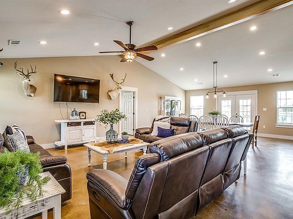 This spacious country home on just over 2 acres has room for everyone! Open floor plan, large living area, separate office, walk in closets in all 4 bedrooms. The custom kitchen boasts plenty of storage, a great pantry, and the extra seating around the island makes entertaining a breeze! The HUGE covered porch is the sweet hangout spot for adults and kids alike, great for BBQ'ing and enjoying your favorite beverage with friends. A 24 ft. backyard pool beckons the kids while adults relax on the large wooden deck. Efficient foam insulation keeps the electric bills down and reinforced concrete slab gives peace of mind. Fenced and gated. Per County commissioner, road will be finished with chip and tar summer 2021