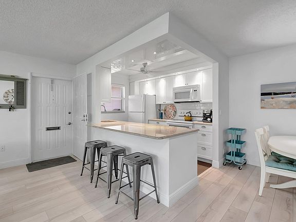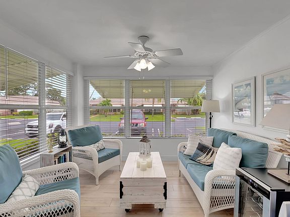 Welcome to this completely updated beachy chic 2BR/2BA corner villa nestled in an active 55+ community. Villa features: Open concept kitchen w/granite counters, neutral tile backsplash, neutral laminate flooring throughout, AC 2015, Water heater 2023, New electrical panel, new widows, screen doors at the front and back, extended back yard patio. This villa is offered turnkey/fully furnished. Enjoy Florida living at its best in this very active 55+ community where you'll enjoy many planned social activities, large heated resort style salt water pool W/clubhouse, pickleball, tennis and shuffle board. Located closed to all amenities, just minutes to the beach and downtown Delray where you'll discover quaint shops, open air cafes, fine restaurants, shopping malls, theater, close to I95/Turnpike and Places of worship. You'll find a coin operated washer and dryer in each building of 4 units.