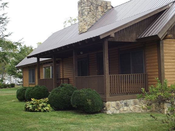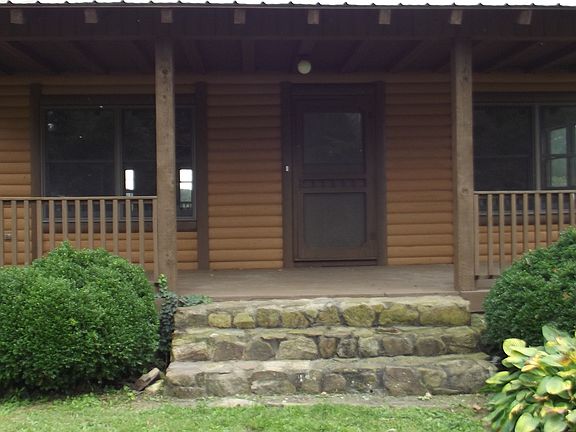 Price Reduced to Sell at $149,900.00 Built in the 1990's you will find there is no lack of space or design in this 3 bedroom 2 bath log home. All newly refinished oak flooring and a large stone fireplace showcase this home. The kitchen features wormy chestnut custom cabinets and a large dining area with a built-in china cabinet. Wormy chestnut bookshelves are built beside the stone fireplace in the living room. Master bedroom/bathroom wing is located on the first floor with large walk-in closet. A beautiful staircase leads from the front entryway to the 2nd floor sitting area, where the balcony over looks the living room. 2 bedrooms, with built-in shelving and walk-in closets are located on this floor, along with the 2nd bathroom. 400 ft of extra storage space is located over the garage. Large unfinished basement and an attached car garage adds to the convenience of this home. 10x12 outbuilding on property.