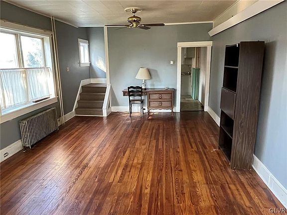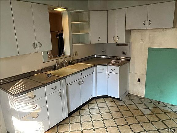 4 Bedroom twin on an oversized lot with 2 car detached garage. Spacious living room with pine floors, eat in kitchen & mud room which opens to the backyard. Second floor features 3 bedrooms and full bath. There is a 4th bedroom and attic storage on the 3rd floor. Full partially finished walkout basement with 6'3" ceiling. Separate room with toilet/sink. The roof is approximately 6 years old. Economical Weil-McClean gas furnace is 4 years old. Within walking distance to the Saucon rail-trail and just minutes to 78. Saucon schools K-12. The home is an estate being sold in as is condition.