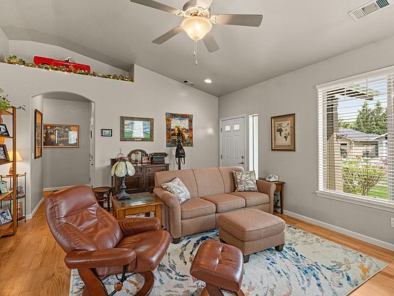 Welcome to 1352 Kyle St, a beautifully maintained home in one of Medford's desirable neighborhoods. With its well-manicured landscaping front and back, this home offers great curb appeal and a warm welcome. Step inside to enjoy 9-foot ceilings that create an open, airy feel throughout the spacious living areas. The layout is ideal for both entertaining and everyday living, with plenty of natural light and thoughtful design touches. The backyard is a private oasis perfect for watching sunsets, lush landscaping, and a storage shed. Whether you're hosting friends or just enjoying a quiet evening, this space is perfect for it all. Major updates offer peace of mind: the A/C and heating system were replaced in 2019, along with the water heater so you can move in and enjoy with confidence.