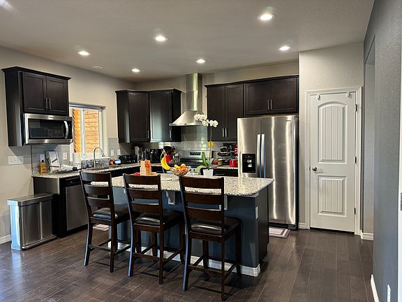 This gorgeous single family home boasts 4 bedrooms plus a flex room/home office space, a fully finished basement, a large covered patio and an attached heated and insulated 4 car garage. The main level hosts a dining room at the front of the house connected to a modern kitchen with stainless steel appliances, including a gas stove. The kitchen flows into the great room that has a built-in gas fireplace showcased by custom white ledger stonework. There is also a powder room on the main level. Heading upstairs, the second level hosts two guest bedrooms which share a bathroom with a bathtub, a separate flex space/home office with french doors, a laundry room with a utility sink and included washer and dryer, and the primary suite. The guest bedroom at the front of the house has mountain views. The primary suite includes a large walk-in closet and bathroom with an oversized tub, dual sink vanity and a shower. The finished basement includes a recreation room, living room and an additional guest bedroom and bathroom. There are also 2 storage closets in the basement. In the great room the sliding glass door leads to the beautiful, covered patio. The side walls are done in cedar, there is ample and dimmable lighting, ceiling fans and built in speakers. One side of the patio has a large barn door that slides open, and the other side has louvres that can be opened for ventilation. The patio leads to the backyard where you can enjoy the calming built-in water feature and on cooler nights you can enjoy the warmth of a built-in gas fire pit with a natural stone bench. At night you will enjoy the tasteful resort style landscape lighting. On one side of the house is a finished and insulated shed (aka backyard studio, we-shed), and on the other side is an open space with a trail. Behind the house is open space with a trail as well. All of it is accompanied by a beautifully landscaped yard, with plentiful xeriscape trees and plants. Lawn mowing, fertilization, aeration, weed control and sprinkler blowout/maintenance are included. Tenant is responsible for snow removal. The backyard is enclosed by a fence with welded wire to keep dogs secure. The front of the house has a large covered porch. The garage was built with the car enthusiast and home hobbyist in mind. The garage is well lit, insulated, has a ventilation system and an electric heater. The walls are finished and painted, and the floors are epoxy coated. There is hook up for electric car charging. The garage doors are of the high lift style and the garage ceilings are 11-12 ft high. The home is located in north Timnath in the highly desirable Serratoga Falls/Kitchel Lake neighborhood. Old town Fort Collins is just 10 minutes away as are Costco and Walmart and other grocery stores. I-25 is 2 miles away. The neighborhood has a lots of open spaces, a community park, ponds and a lake. There are miles of hard and soft trails throughout. The home is within walking distance of the new Timnath Middle and High school. The school bus stop for Timnath Elementary is just a few steps from the house. Available starting November 15, but timing could be potentially moved up or down. 18 month lease preferred (discounted and locked rent for 18 months). 1 year lease is also available. A shorter lease term may be negotiated. Application Details - 12 month lease for $3190 per month, 18 month lease for $3090 per month - Property Tour Required with at least 24hrs notice. - Application fee is paid for by applicant via Zillow and is per person - Refundable security deposit equal to 100% of one month's gross rent is required. - Security deposit due at signing, first month rent due before move in. - Washer and dryer use included in rent. Tenant Qualification - Total income of at least 3X monthly charges & 700+ credit score is required. - Tenant responsible for gas, electric, water and trash removal. - Tenant responsible for snow removal. - Co-Signers will not be considered to fulfill any qualification requirement. - Pets considered with pet fees. No large dogs (up to 60lbs, breed restrictions, must be over age 1). No more than 2 pets total will be considered. No cats allowed. Pet deposit: $300 Pet fee: $35/month per pet. No smoking/vaping of anything inside the house Renters Insurance REQUIRED The prospective tenant has the right to provide to the landlord a portable tenant screening report, as defined in section 38-12-902 (2.5), Colorado revised statutes; and if the prospective tenant provides the landlord with a portable tenant screening report, the landlord is prohibited from charging the prospective tenant a rental application fee; or charging the prospective tenant a fee for the landlord to access or use the portable tenant screening report. Any portable screening report must have been completed within 30 days of the application date. The screening report must be made available to the landlord at no cost directly from the consumer reporting agency or through a third party website that regularly engages in providing consumer reports.