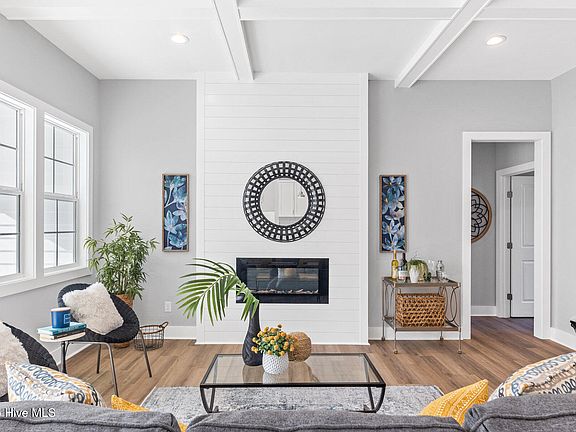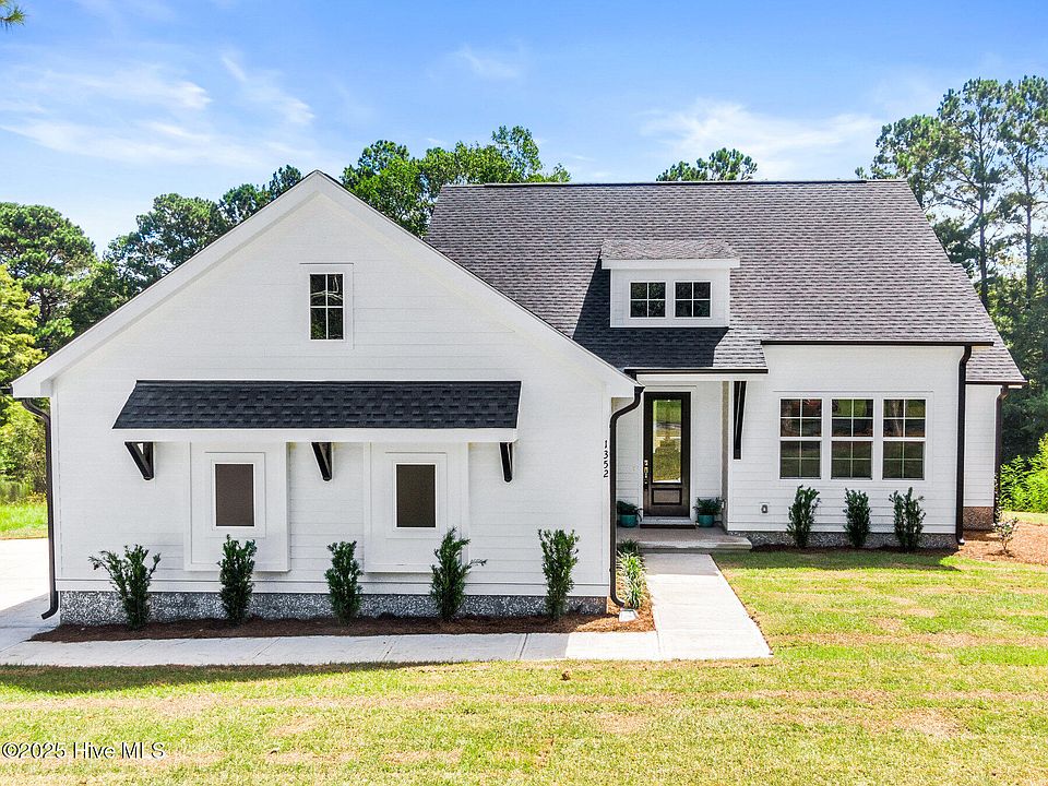 Welcome home! This beautifully crafted new construction home by Elevate Construction, located in the highly sought-after community of Hewett Farms. This thoughtfully designed 3-bedroom, 2-bathroom home features an inviting open floor plan with stylish details throughout. Step inside to a welcoming foyer with elegant board and batten wainscoting that leads into the spacious living area. The living room showcases coffered ceilings and a shiplap-accented electric fireplace, creating a warm and modern focal point. The open-concept kitchen seamlessly connects to the living space, making it perfect for entertaining or everyday living. The split-bedroom layout offers privacy, with the primary suite tucked away and featuring a generous walk-in closet and a spa-like ensuite with a walk-in tiled shower. Enjoy peaceful evenings on the screened-in back porch overlooking the community pond—ideal for relaxing or entertaining. Hewett Farms is a charming, picturesque community just minutes from the dining, shopping, and coastal amenities of Shallotte and Ocean Isle Beach. Don't miss your opportunity to own a brand-new home in this desirable location!