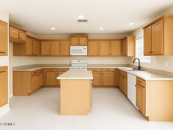 Welcome to this beautiful two-story home tucked away on a quiet cul-de-sac in Buckeye. Featuring 4 bedrooms and 3 full baths, this spacious property offers an open floor plan perfect for both everyday living and entertaining. The kitchen boasts a large island with extra counter space, ideal for meal prep or casual dining. Upstairs, you'll find a versatile loft and double sinks in the bathroom for added convenience. Enjoy year-round comfort with two A/C units and relax outdoors on the covered patio. With plenty of room for everyone, this home truly checks all the boxes!