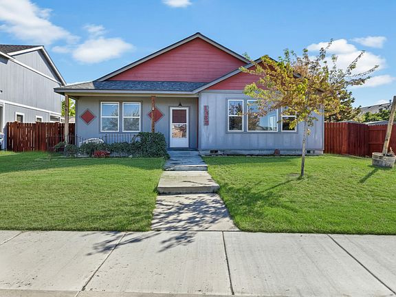 This is a delightful 3 bed 2 bath right in the center of Redmond. Easy access to Bend and Sisters as well as parks nearby. 9 foot ceilings, fantastic large great room with new LVP flooring and paint. Cozy gas fire place with custom mantle. Functional kitchen with a nice dining area as well as a raised dining bar. Primary bedroom with double vanity, walk in closet and glass slider leading out to a quiet, sunny patio, partially covered with BBQ and ceiling fan. Two large sheds bring plenty of storage, RV parking and alley access. Central AC come and see!