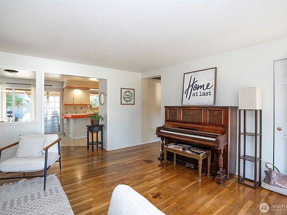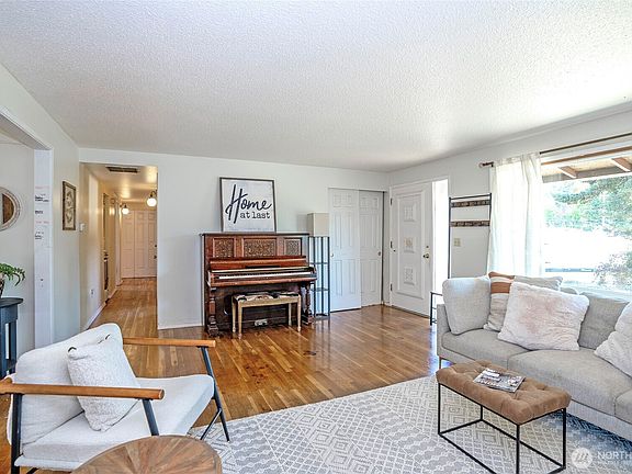 Spacious Rambler on a Large Corner Lot Overlooking Mayfair County Park. Tucked away at the end of a quiet street, this single-level home offers classic charm and endless potential. The large kitchen opens to the dining and living areas, creating a comfortable flow for everyday living and entertaining. Original hardwood floors run throughout, and the wood-burning fireplace adds warmth and character. The converted garage provides a generous flex space — perfect for a family room, studio, home office, or 4th bedroom. Three additional bedrooms also feature hardwood flooring, including a primary with a full bath and a second suite with a half bath. The backyard offers a deck, storage shed, and plenty of open space. Near JBLM, parks, and freeway!