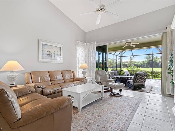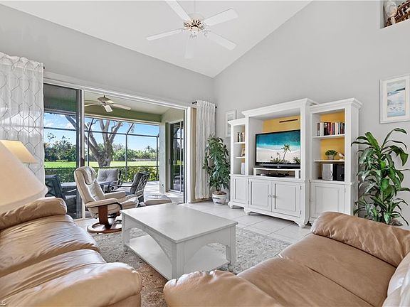 Three bedroom villa with a large lanai overlooking the 8th hole. Golf membership is transferable with a new golf cart for tenant to use on the golf course.. Open living room with a new 77 inch TV! The kitchen is updated and spacious. There's an alcove off the kitchen that's screened in, providing easy access to the gas grill. This setup is ideal for outdoor cooking and dining while enjoying the Florida weather. The third bedroom is currently being used as an office/den but also features a Murphy Bed. The oversized lanai offers an amazing private view of the 8th fairway and green, a perfect spot to relax and enjoy the picturesque surroundings. Worthington is a friendly bundled golf community offering a range of activities including golf, tennis, bocce, fitness center, poolside cabana, clubhouse dining, dances, cards, trivia, and more. The community is conveniently located close to the airport, shopping, dining, entertainment, and the beautiful Gulf beaches. No Landline Phone. No Smoking. No Pets. Available February & March 2027. Check for off season availability.