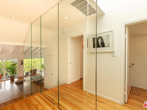 Hilltop Hideaway with explosive views in prime Sherman Oaks. Gated courtyard entry leads to spectacular views the minute you open the front door. Unique floorplan w/ hardwood floors in most rooms. One bedroom and bath at front of the house and a master suite with picture window, spa style updated bath, walk-in closet and vaulted ceilings enjoying the limitless views. The open living, dining room is adjacent to the granite kitchen and opens to a large viewing deck. The lower level of the home has a guest bedroom/bath and separate den opening to a stone deck with spa and additional gardens including lower level flat pad. Truly a special home ready to move in!