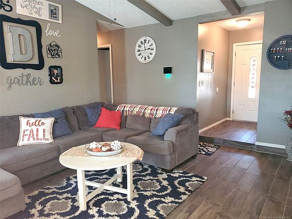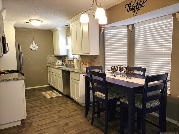 Newly Remodeled! You do not want to miss out and this home! So Cute! Full brick, custom cabinets in kitchen with granite counter tops, SS appliances, newer light fixtures throughout tile & carpet. XL inside utility room/storage/pantry. Backs to Greenbelt. Easy access to Hwy 75 & Tulsa Hills shopping