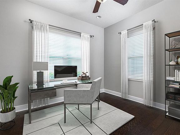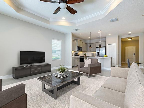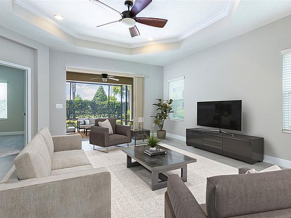 One or more photo(s) has been virtually staged. Look no further! Curb appeal galore in this Neal Communities villa home in Fishhawk West. The home features 1,525 sq. ft., 2 bedroom/2 bathrooms plus office/den and an attached 2-car garage. Two-way split plan allows for privacy. Covered/screened-in lanai allows for outdoor entertaining and the great room has fully-opening pocket doors. Gourmet kitchen with 42" cabinets, stainless range and refrigerator, quartz countertops, enormous island with cabinets and tile backsplash. Tray ceiling in the great room and lovely tile flooring throughout much of the main living areas. Master bedroom is spacious and bright. Master bathroom has double vanities, a large stall shower, and lots of closet space. Completely move-in ready with new paint and carpet throughout. Fishhawk West is an impressive community with charming architecture and numerous amenities including resort style club house, pool, etc. From this home, it's a short distance to all of Fishhawk Ranch and Tampa's many attractions; Gulf beaches, Tampa Bay and Gulf boating, local shopping, restaurants and Interstate-75. A great commute to points north and south. Make this beautiful home your own! Some photos virtually staged.