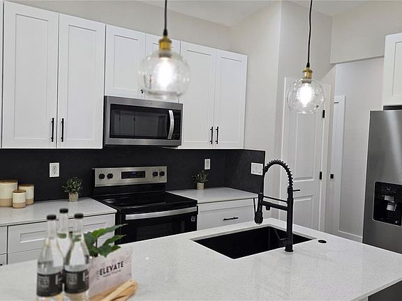 Bonus roomBeautiful backsplashWaterfall faucetsStunning backyardEuropean modern faucetsInside laundry roomStainless steel appliances