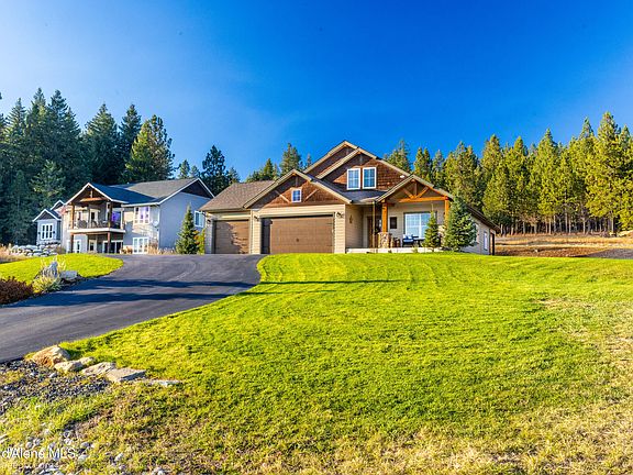 Take in the view as you step inside this beautiful 4B/3B home in Wild Ridge Estates. Located at the base of Rathdrum mountain, this home is just a short ATV ride away from 1,000s of acres of public land with trails winding throughout. Located between the Spokane airport and Coeur d'Alene but only 6.5 miles from the supermarket makes this location an ideal spot in North Idaho. With ample southern exposure, natural light & cleared space, it's perfect for a garden or building a shop. Inside, enjoy open space for entertaining and daily living with a cozy gas fireplace and oversize windows. Conveniently, the primary bedroom is separated from the two bedrooms. The 4th bedroom upstairs could serve as a second primary room, a bonus room or hobby space. Much of the open area across from the property is Wild Ridge Estates community space providing additional privacy and view. With 4 ski resorts and endless lakes to explore, this home provides both comfort and plenty of North Idaho adventure.