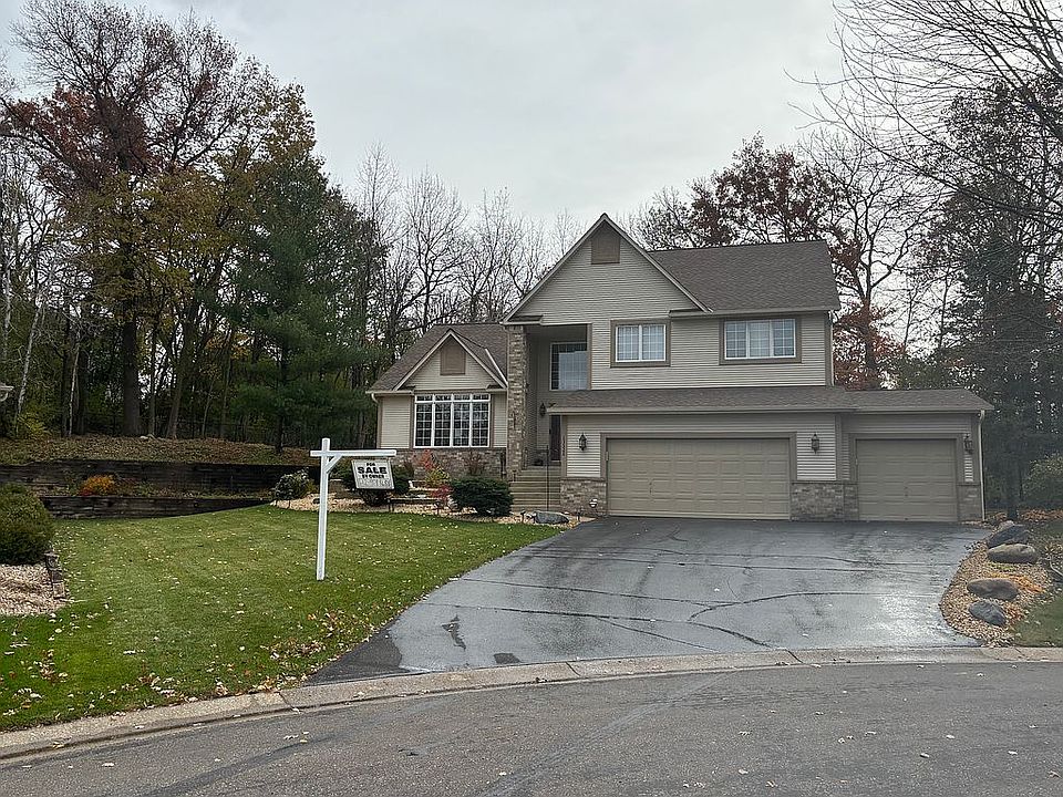 Welcome to this 5 bedroom, 4 bath home with 3 car garage on a half acre, wooded cul de sac lot in high demand Rosemount. Large fenced in backyard, perfect for children or pets. Walk in to a dramatic 12' entry filled with natural light. Formal living and dining rooms are perfect for entertaining. Home features a large kitchen with quartz countertops, tile backsplash, 6' center island, walk in pantry and storage galore. Informal dining area with sliding glass doors leads to a two level deck. Main level family room has gas fireplace, flanked by built ins. Main floor bedroom or office, full bath, laundry room and storage room complete this level. Upstairs, the large master bedroom has vaulted ceiling, large 15' x 6' walk in closet and beautiful master bath. Dual vanities, large glass shower and jacuzzi tub for relaxation. Upper level also has 2 more bedrooms and a full bath with two sink vanity.