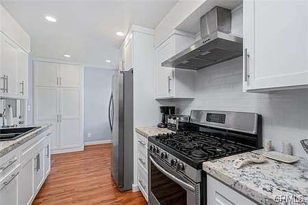 Unbelievable Location: Less than a mile from Whittier College! Just a mile from Uptown Whittier. 13526 Russell is a front house on the lot, 2 bedroom 1.75 baths, completely remodeled Kitchen with granite counters, custom cabinets, and recessed lighting. Both bathrooms have granite countertops, custom cabinets, glass shower doors, and more. Luxury vinyl flooring throughout. Walk out the back door and see the huge yard (Newer stained wood fences surround property) with covered patio, concrete walkway. There're so much more: New roof (2018)! Newer water heater! brand newer insulated garage doors! 2010 copper piping throughout! ALL appliances included: refrigerator, washer and dryer, microwave, newer 6-burner stove. It is in a truly remarkable location. One year lease at least. Please note: All photos were taken before the previous tenant moved in.