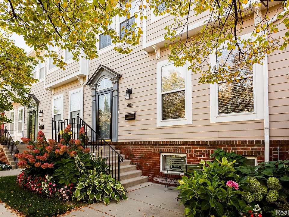 Located on a quiet, tree-lined street in the heart of Corktown, this updated three-bedroom/two-and-a-half-bath townhome features an original hand-painted mural by Detroit artist Ouizi; hardwood floors throughout the first floor; a spacious three-story layout; and an open kitchen with stainless steel appliances, crisp, white cabinetry, and an ample pantry space. The darling first-floor powder room has been updated with wallpaper and a tasteful pedestal sink. Upstairs, the primary suite features vaulted ceilings, a large walk-in closet and a private, spa-like bathroom with a tiled walk-in shower and double vanity. The large second-story deck above the attached two-car garage provides plenty of space for outdoor dining, relaxing and entertaining. A partially finished basement offers a sizable flexible space that works well as a playroom, creative studio, workout area, or large office.