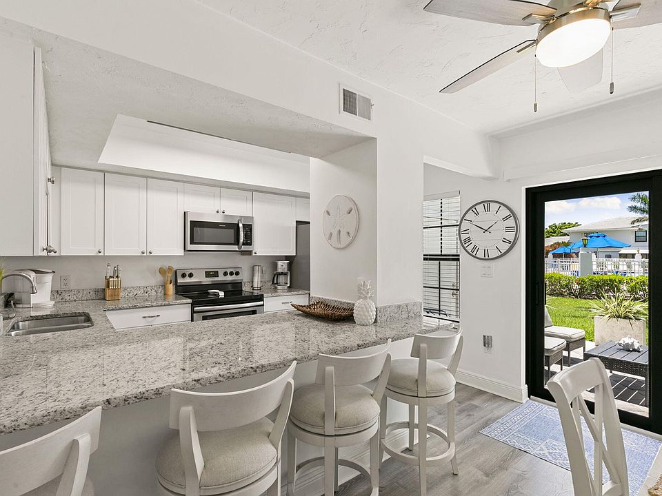 Step into the perfect blend of comfort, convenience, beautifully appointed 2-story condo in the heart of Marco Island. Whether you're looking for a full-time residence, seasonal getaway, or investment opportunity, this property checks all the boxes. The interior boasts a thoughtfully updated kitchen with all newer appliances, a spacious pantry, all impact-resistant windows and doors for added security and peace of mind. Additional features include ample storage, two assigned parking spaces, and a newer AC and hot water heater. Sold turnkey furnished, this home is move-in ready and with high elevation, making ownership stress-free from day one. Step outside to your private paver patio—ideal for sunset dinners bathing the space in golden light. Just steps away, the community pool invites you to relax and enjoy the Florida lifestyle. Centrally located, you'll love the proximity to pickleball and tennis courts, the library, museum, YMCA, top-rated dining, shopping, and more. And when beach time calls, simply hop on your bike—coastal living doesn't get more effortless.