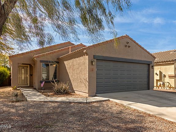 Great home on an Amazing Corner Lot! This floor plan gives you plenty of space where you need it! 3beds/2baths with nice kitchen and spacious great room! Back patio has built-ins for a refrigerator or electric fireplace and other kitchen appliances, like blenders for happy hour! Lots of pavers for another dining or gathering space. One bedroom features a murphy bed that can stay or leave. New water heater and toilets in 2024. New exterior paint in 2023. Within walking distance to the elementary school. Close to the 24 fwy, Rittenhouse, Rd, Ironwood Medical Center, Queen Creek Olive Mill, and more! In the popular community of Pecan Creek! What a great opportunity!