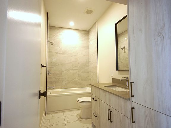 The living and dining area is bright and inviting, offering a comfortable space to relax. Both bedrooms are generously sized, with large closets for storage. The bathroom is sleek and stylish, featuring contemporary fixtures and plenty of vanity space.
