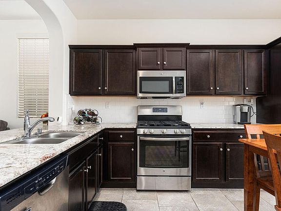 Welcome to this beautiful 2-story Leo Wilson home, built in 2017. The open-concept kitchen and living room downstairs create a spacious and inviting atmosphere for gathering with family and friends. Stainless steel appliances in the kitchen compliment the modern aesthetic. Tile and vinyl flooring throughout the home offer durability and easy maintenance. Upstairs, three bedrooms include a luxurious master suite. Outside, a small low-maintenance backyard features a cemented patio for outdoor dining or relaxation, surrounded by lush turf for easy upkeep and enjoyment. Conveniently located near shopping, dining, and top-rated schools, this home offers the perfect blend of comfort and convenience.
