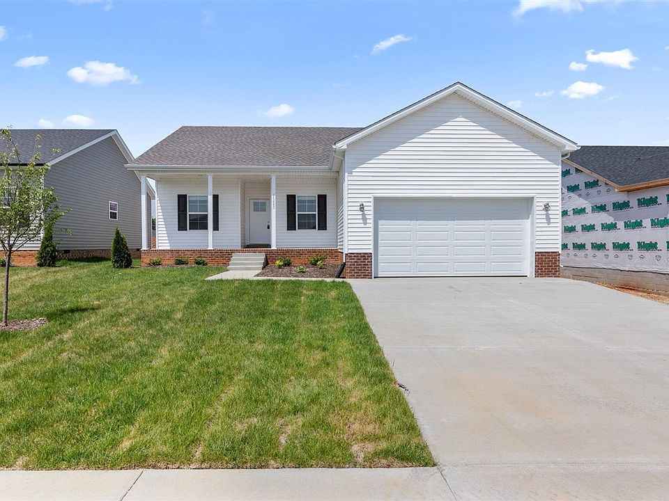 This beautifully designed 3 bedroom, 2 bath home on a corner lot offers modern features and a thoughtful layout. Enjoy spacious 9 ft ceilings and ceiling fans throughout. The master bath features stylish double vanity and tile walk-in shower, while the second bathroom includes tub/shower combo. The kitchen boasts granite countertops, stainless steel appliances, a sleek tile backsplash, and white cabinetry. this home is directly across from the community amenities featuring pickelball and basketball courts, playground, and 2 pavilions. Call today to schedule your showing! Seller is a licensed KY real estate agent.