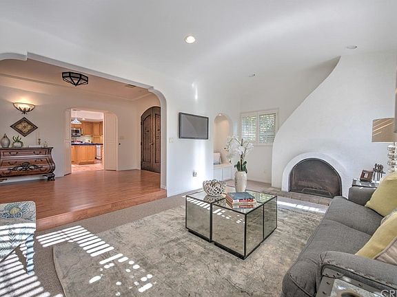 Within walking distance to Kenneth Village and the Brand Library, this original built 1926 Spanish style home exudes warmth and character of a bygone era. Modernized, enlarged, and remodeled in the 1990's it's even better. Pass the arch to enter a spacious living room with stucco and stone wood burning fireplace and a cozy reading nook. A formal dining room overlooks the private Satillo tile patio. Oak cabinets and a center island compliment the bright and cheerful kitchen.Over 2,000 sqft in size! There are four spacious bedrooms, one a master suite with 10 ft tall ceiling, walk-in closet and luxurious bath with spa tub, steam shower and bidet. With custom built-in bookcases, a secondary bedroom is outfitted as a library or den. A spiral staircase leads to the two upper level bedrooms. All of the carpeting is new and the interior is freshly painted, its move in perfect!At 12,500 sqft its situated on one of the largest parcels in Castle Heights. Entertain or relax on the big brick patio while taking in the pleasant scenery, sounds of the circulating stream, and the fragrances of a well planted backyard paradise. A meandering pebble path leads the way amongst citrus, avocado and passion fruit trees. Try your green thumb at growing your own vegetables in