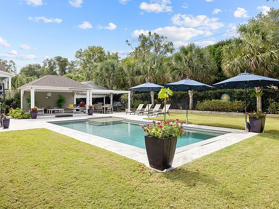 Discover 1353 Scotts Creek Circle, a remarkable blend of classic elegance and modern living nestled in the highly sought-after Scotts Creek neighborhood in southern Mount Pleasant. Oozing southern charm with its double front porches, this 5-bedroom, 3.5-bathroom home spans approximately 4,383 square feet and boasts a wonderfully open floor plan with high ceilings, hardwood floors, large rooms, and an abundance of windows that flood the space with natural light. This impressive property features a magnificent rear screened-in porch equipped with composite decking, skylights, under-rail lighting, custom sunshades, and a gas fireplace for year-round enjoyment.The beautifully landscaped backyard is a true outdoor oasis, situated on one-third of an acre and showcasing a heated 16' x 32' saltwater pool with a sun ledge and travertine tile surround. A poolside cabana and built-in umbrella stands offer shade, while a grilling area covered by a pergola makes outdoor entertaining easy. Lush landscaping, solar accent lighting, mosquito misting system, and a garden potting shed complete this serene outdoor retreat. Inside, the gourmet kitchen serves as the heart of the home, equipped with granite countertops, a large center island with seating, and stainless-steel appliances, including a KitchenAid gas cooktop and convection oven. Thoughtful touches such as under-cabinet lighting and a fantastic walk-in pantry with a pass-through door for groceries add convenience and functionality. Adjacent to the kitchen, the sunroom offers a bright, peaceful space perfect for casual dining or a cozy spot to relax with morning coffee, seamlessly blending practicality with comfort. The expansive family room is designed for both relaxation and entertainment, with a gas fireplace, built-in bookshelves, and large windows that invite in natural light. The formal dining room, currently styled as a living room, offers flexibility to suit your needs. Whether you prefer a more formal space for hosting gatherings or a cozy sitting area, this room adapts effortlessly. The tray ceiling and elegant wainscoting add a touch of sophistication. A dedicated home office with glass doors and fiber optic internet speeds offers a quiet, private workspace, ideal for remote work or study. Additionally, the downstairs includes a versatile bedroom currently serving as a home gym, providing even more flexibility for your lifestyle. The primary suite is an elegant upstairs retreat, boasting a spacious bedroom with a separate sitting area. The luxurious ensuite bathroom is a spa-like retreat, featuring a beautiful walk-in shower, freestanding soaking tub, custom tile work, dual vanities, private water closet, and an expansive walk-in closet with custom built-ins. Three additional bedrooms are located upstairs, two of which open onto the full-length upper porch perfect for enjoying morning coffee or evening breezes. One bedroom includes an ensuite bathroom, while the other two share a full bathroom accessible from the hallway. A large game room, which can also serve as another bedroom, and convenient attic storage with pull-down stairs add further versatility. Equipped with two new HVAC systems installed in 2023, a climate-controlled encapsulated crawlspace, an attic fan, and a new Rinnai tankless water heater with a recirculation pump, this home is designed for maximum comfort and energy efficiency. Additionally, the property includes a natural gas hookup, complete with a platform and transfer switch, for easy generator installation, ensuring you're prepared for any power outages. Additional features include a two-car garage with a 200-square-foot loft for extra storage, a SimpliSafe security system, and a whole-house gutter system with gutter guards for hassle-free maintenance. Scotts Creek is an exclusive community of just 70 homes, set in a picturesque setting with mature landscaping, majestic live oaks, and abundant wildlife. The neighborhood offers residents a beautiful nature trail that leads to a private deep-water dock, perfect for fishing, crabbing, kayaking, or simply relaxing by the water. Residents also enjoy easy access to Old Mount Pleasant and local restaurants via golf cart or bike, without the need to navigate busy roads. The scenic trails and ponds further enhance the natural beauty of the neighborhood, making it an ideal location for outdoor enthusiasts. This exceptional property offers the perfect blend of southern charm, modern convenience, and outdoor living in one of Mount Pleasant's most desirable neighborhoods. Whether you're lounging by the pool, entertaining on the expansive porches, or taking a scenic stroll through the neighborhood, this property embodies the essence of Lowcountry living.
