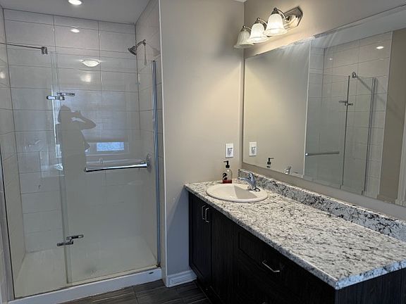Beautiful recently built townhouse in wood haven. 4 piece ensuite in primary bedroom with roman tub and glass tiled shower. Stone countertops and custom kitchen cabinetry. Finished basement den, provides additional space for office, or entertainment space. Hardwood floors on main floors and ceramic tiles in foyer and bathroom. Convenient upper level laundry room. Spacious bedrooms and open concept design. Tenants pay for all utilities and hot water heater rental.