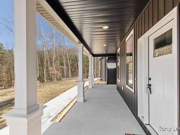 Don't miss this great opportunity! Only 6 months old and better than new. Retaining walls, final grade, ft yard, window treatments, drainage, gutters and leaf guards are all in! Gorgeous 1 acre hilltop and wooded setting. Large covered front porch and covered maintenance free rear deck. Great room with 10' ceilings, main floor and walk out 9' ceilings. Great open floor plan w/lots of natural light. Beautiful amish built custom kitchen w/stainless steel appliances, center isle, granite, and walk in pantry with custom shelving. Master bedroom bath has tile shower and quartz counters. Oversized 2 1/2 stall with hot and cold water (fits 1 ton dually crew cab truck) Very efficient with highest gas bill $118 set high. 200 amp electric. 220 outside roughed in for generator. Tons of closets. Room description: Foyer, FDR, Gr, Da, Kit, Mud room, Laundry room, Mbr suite, 2 Br, Ba