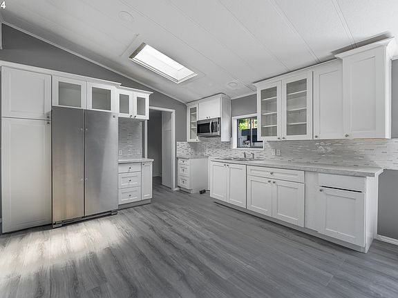 WELCOME HOME! To this 3 bed + 2 bath well kept double wide manufactured home located on a corner lot. This cozy home features vaulted ceilings, ceiling fans, new electric range, beautiful backsplash tile, skylight for plenty of light, and fresh interior + exterior paint. The home is fenced with a patio and tool shed perfect for storage. This all ages Clairmont Mobile Home Community provides residents fantastic amenities such as a clubhouse, event space with a kitchen, swimming pool, and playground. Easy access to shopping centers + 99e + I205, schedule your private showing today!