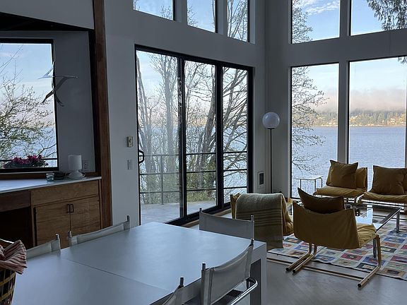 Gorgeous architectural home on remote 4 acres with exceptional west facing water views! Perfect Artist's Retreat! 4 bedrooms, 1 3/4 bath plus a 1/2 bath on main level. Furnished and ready to move into September 1st. 3 story home, open floor plan, with expansive ceiling heights in main living areas, 2 decks, fireplace, washer dryer. Quiet neighborhood with plenty of privacy. No beach access. Make this incredible home yours to live in for 8-9 months! Please make appointment to view property. Pets negotiable. See our website for rental criteria and for online application: https vmi. Contact for viewing or questions concerning the listing: VMI Property Management