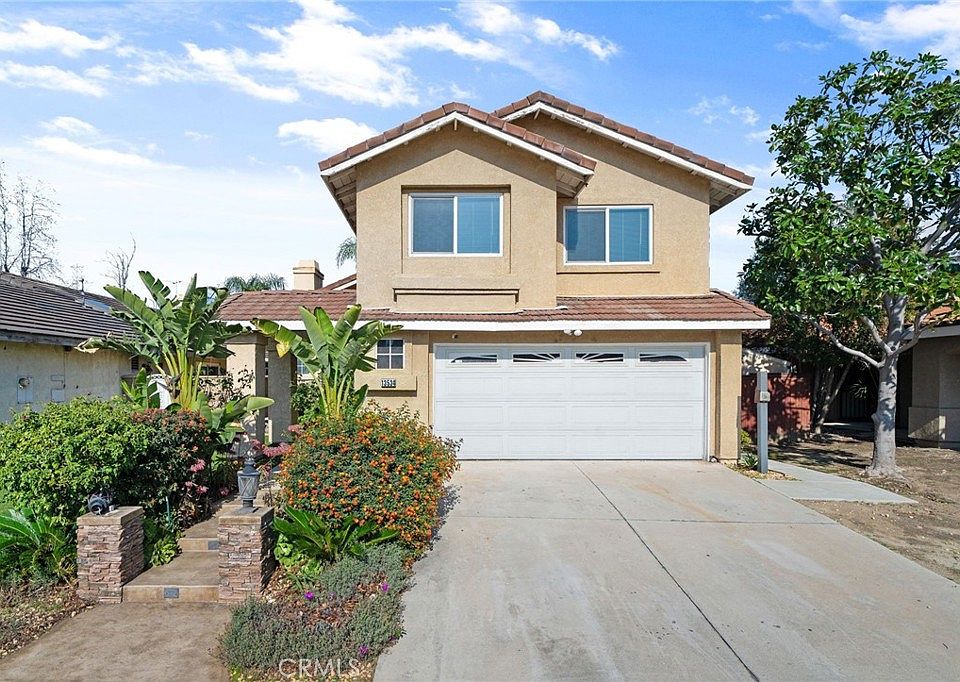 Welcome to 13534 Columbus Ct located in the Village of Heritage! This cute 4 bedroom, 2.5 bath home features an open floor plan with vaulted ceilings that is perfectly set up for entertaining with French doors off the kitchen and dining area that lead to a spacious backyard, ideal for gatherings with family and friends. The living room has a cozy fireplace perfect for cold, rainy days. All bedrooms are located upstairs along with 2 full bathrooms. This property is on a cul de sac and located in the highly desirable Etiwanda School district with shopping and dining close by!