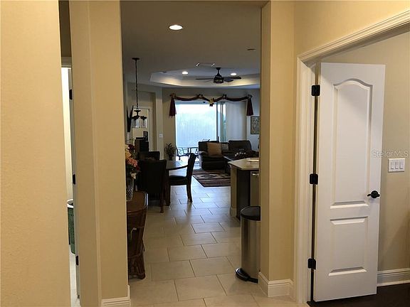 Beautiful Villa! As you enter through your own private entrance, your eye is drawn straight through your Great Room pocket sliding doors to your screened in extended lanai. Nicely appointed kitchen with gorgeous fully overlay Cumberland Cherry style cabinets, quartz counter tops with tile back splash, island and stainless appliances. Tile in all the common areas and carpet in bedrooms. Blinds are included along with 5 1/4" baseboards and coffered ceiling in great room with crown molding. Gorgeous home and a must see!!