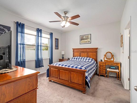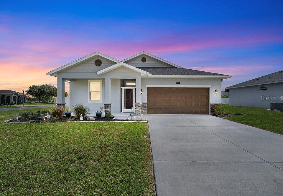 Welcome to your serene retreat in Windy Ridge! Built in 2020, this beautifully designed home combines modern style with timeless comfort. Step inside to discover an inviting open floor plan featuring spacious living and dining areas, ideal for entertaining or everyday living. The kitchen is a true showstopper with sleek quartz countertops, abundant cabinetry, and a functional layout that makes cooking a joy. The primary suite offers a relaxing escape, while the additional bedrooms provide plenty of space for family, guests, or a home office. Natural light fills every corner, creating a warm and airy atmosphere throughout. Step outside to your own private oasis—a grand, fully fenced backyard highlighted by a gorgeous koi pond, perfect for quiet mornings, evening gatherings, or simply enjoying the peaceful setting. With ample room for gardening, pets, or play, this outdoor space is designed to impress. Plus, the exterior was freshly painted just last month, giving the home a crisp, like-new feel. Residents of Windy Ridge also enjoy access to a refreshing community pool, making it easy to relax and connect with neighbors. Conveniently located near shopping, dining, and the Harris Chain of Lakes, this property blends comfort, style, and community living. Don’t miss the chance to make this exceptional home yours!
