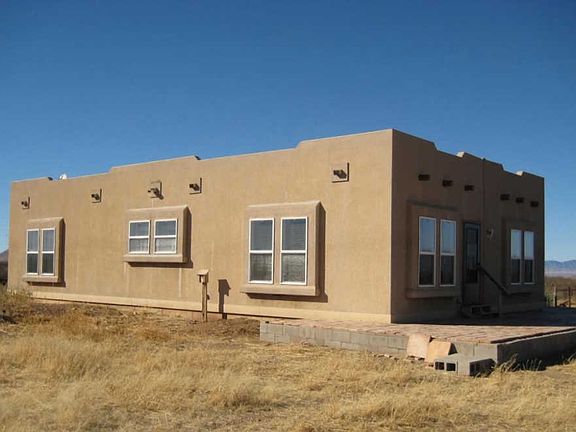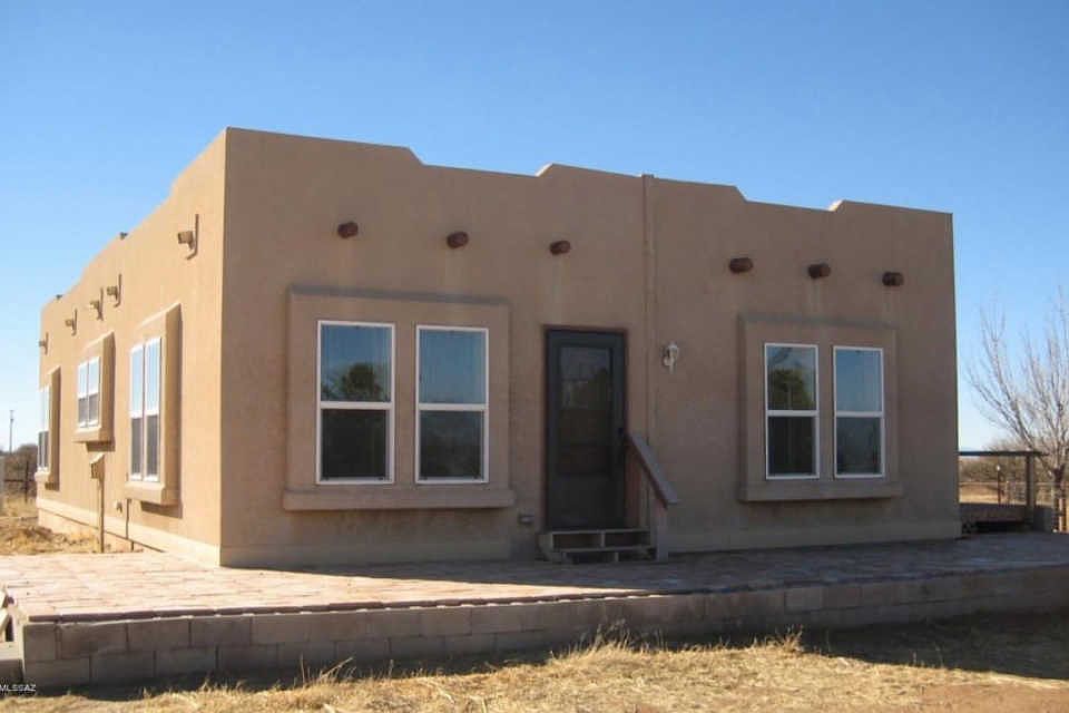 A Rare Find...7 beautiful acres near PRIME GRAPE PRODUCTION LAND near the Chiricahua Mountains...CUSTOM DESIGNED ADOBE Manufactured Home with 2 bedrooms and 2 full baths, Open Concept living room and dining room with high ceilings. Detached 24' X 36' garage /outbuilding on a concrete pad, insulated ceiling. 4' wire fence on eight (8) foot spacing of treated wood poles surrounding about one and one half acres to contain pets..(2) full RV hookups, leveled RV sites with WSE 50 amp. and underground water lines and sewage drain. Home is wired for dual TV with antenna in placeHome is sited north and south, view from kitchen and living face the surrounding mountains.
