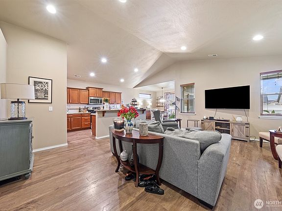 Discover this beautifully designed 4-bedroom, 2-bath home featuring a bright open-concept layout perfect for modern living. The spacious great room flows seamlessly into the kitchen, complete with granite countertops, a huge walk-in pantry, and a cozy breakfast bar ideal for casual dining or entertaining. The adjoining dining area opens to the back patio, creating an easy indoor-outdoor connection. Retreat to the roomy primary suite offering a large walk-in closet, soaking tub, double vanity, and separate shower. Outside, enjoy a fully landscaped and fully fenced backyard with underground sprinklers, ready for relaxation or play. A sought-after 3-car garage adds plenty of space for vehicles, storage, or hobbies.
