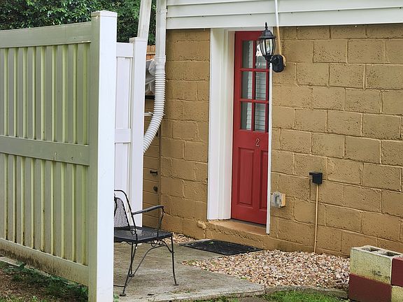 This cute Studio Garden Apartment is on the bottom floor and has tiled floors throughout, outside patio with a privacy screen, low volt lighting & antique table & 2 chairs, and sits below another apartment which helps keep this studio cooler in the summer