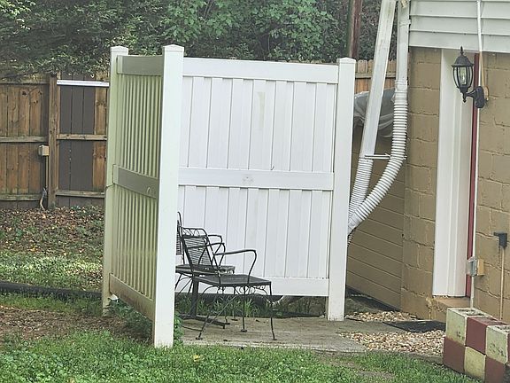 The Apartments are in a white sided building in the back of the main brick home on the property