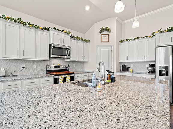 Built in 2022, this 4BR/2BA single-story home offers over 2,000 heated sqft with a functional, open layout. The kitchen features granite countertops, a large island, walk-in pantry, and stainless appliances—perfect for everyday use and hosting. High ceilings add a clean, elegant feel, and the living space opens to a screened porch with a pond view and fenced yard.