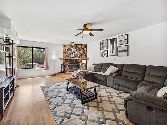 Spacious updated second floor 2 bedroom/2 bath located in highly coveted Forest Edge Community overlooking beautiful lush landscape common area. Unit features open concept kitchen with granite countertops and stainless steel appliances, living room and dinning room combo featuring luxury vinyl flooring with custom stone wood burning fireplace that opens up to private balcony overlooking park like settings - great for morning coffee or weekend entertaining BBQs. Executive suite with en-suite updated bath and great closet space, additional bedroom/office with updated full bath. Convenient in-unit washer and dryer, plenty of storage, 1 car garage plus 1 additional assigned outdoor space. Located close to Forest Preserve and Hummingbird Park, Downtown Palatine, shopping and easy access to Route 53/I90 and train station. Great home in a great location with great open space!