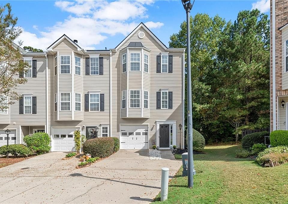 Welcome to this charming and well-maintained 2-bedroom, 2.5-bath end-unit townhome in the peaceful Pilgrim Lake community. Nestled on a quiet cul-de-sac, this three-story home offers abundant parking with a two-car garage and a flat driveway that easily accommodates two more vehicles. The main level boasts an open-concept layout, perfect for entertaining, featuring a spacious kitchen with breakfast bar, a dining area, and a cozy living room with an updated gas fireplace. French doors lead to a private back deck overlooking a wooded yard and tranquil lake views. Upstairs, you’ll find two bright, generously sized bedrooms, each with its own ensuite bath and ample closet space. The laundry closet is conveniently located in the hallway. Recent updates include fresh interior paint, a newer roof (2020), new gas line for the fireplace, and a newer washer and dryer. All appliances remain with the home. Pilgrim Lake residents enjoy a well-kept community with HOA services that include trash collection and lawn maintenance. With its ideal location near downtown Cumming, GA-400, Cumming City Center, The Aquatic Center, shopping, dining, and top-rated schools, this home offers comfort, convenience, and value all in one.