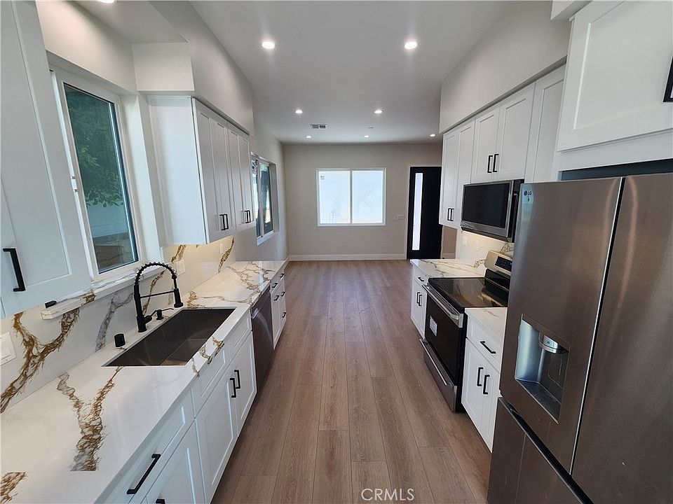 Brand new Construction, 3 bedroom-3 bath ADU located in Van Nuys. This beautiful home has vinyl flooring, stainless steel appliances and quartz countertops in kitchen. Recessed lighting, double pane windows and sliding doors. High ceilings and central AC. Washer and Dryer are included.