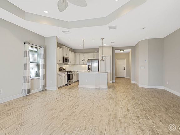 Available: 2021-01-04 - Live the Florida lifestyle in this gorgeous Tidewater Model Villa. This 3 bedroom, 2 bath villa located in Sagewood, a gated community in Fishhawk Ranch West, won't last long. Walk up to a cozy front porch and enter the home to find a well-designed open floorplan with modern wood-look ceramic tile in the main living spaces and plush carpeting in the bedrooms. Neutral colors and an abundance of windows throughout the home give it an airy and bright feel. The den with solid French doors is just off the foyer and can easily be used as an office, formal living/dining area, or additional bedroom. Continue to find the beautiful kitchen with crowned cabinets and under-mount lighting, stainless steel appliances including a 4-burner gas range, subway tiled backsplash, and granite counters. A large prep-island with an under-mount sink can easily seat several for a casual meal and opens to a spacious great room that features tray ceilings and plenty of natural light. Through triple sliders, enjoy entertaining in the extended screened-in lanai with mature landscape and no backyard neighbors. The bright and roomy master bedroom has double windows, 2 separate closets, and an en suite bathroom featuring a dual split vanity with quartz counters, a step-in glass-enclosed shower, and a private water closet. The secondary bedrooms with a shared full-size bath are located at the front of the home allowing everyone to have their own space. You'll love the peacefulness of this community with its giant oak trees and native Florida landscapes. Enjoy low maintenance living and all the amenities of FishHawk Ranch West including resort-style pool, heated lap pool, The Lake House with fitness center, and recreation areas. Walking distance to both Stowers Elementary / Barrington Middle School and bus service to Newsome High School. The villa is minutes from the new Publix, restaurants, shops and more! NOTE: Additional $49/mo. Resident Benefits Package is required and includes a host of time and money-saving perks, including replacement air filters delivered monthly, concierge utility setup, online maintenance portal, online rent payment portal, one lockout service, and one late-rent pass. Learn more at the Resident Benefits Package.
