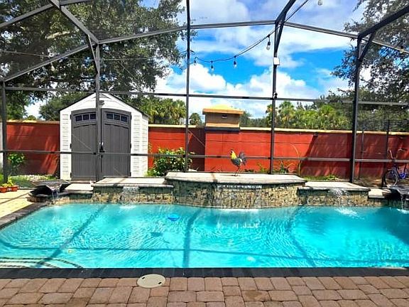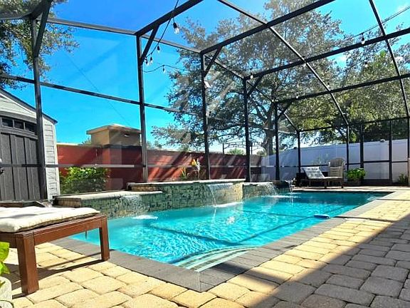 Rare lifestyle opportunity with this upgraded screened private Pool Home located in the top-quality life style Falcon Trace/Hunters Creek community. Located in the golden mile - closed to all the important areas (Airport, Disney, Universal, Sea World, Hospitals, great schools, Malls, etc...). This great home has been upgraded making sure every single detail gets covered; Roof replaced on 2020, both bathrooms have been upgraded with top-quality porcelain, vessels, and faucets, vinyl fence all-around installed on 2024, top-quality paint all around the house on 2024, kitchen appliances upgraded on 2024. Large sliding doors open to the pool featuring five jets and a top design, extending your living space and providing ultimate privacy. This exceptional three-bedroom, two-bathroom pool home is perfect for those who desire a luxurious lifestyle with privacy and style at an affordable price. Step inside to find high ceilings, a spacious and effective layout, with a big living area, a beautiful dining room, a cozy second living area, an immersive family room/state of the art private movie theater, and a gourmet kitchen with high-end stainless appliances.