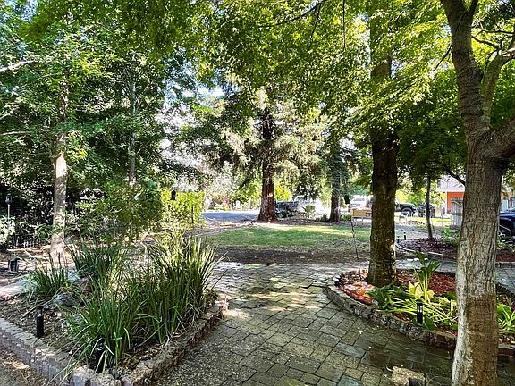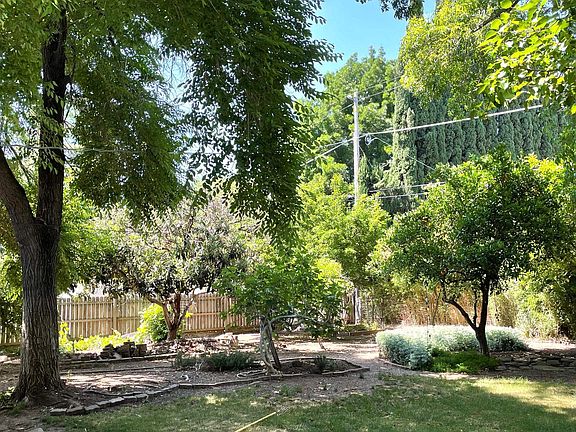 This home is full of potential! It sits in the middle of a true oasis of greenery with huge trees providing an amazing full canape of protection from the summer heat. The .31 acre is fenced with back yard entry and has plenty of room for a garden and outdoor enjoyment. There's a wood shed, laundry room, and a carport with second bay ideal for a trailer or RV storage. The home features an open floor plan with some newer flooring and paint. Dual pane windows throughout. Enjoy the beautiful view of the backyard from the spacious kitchen. The refrigerator is included, along with the washer and dryer. The bathroom has been recently upgraded with newer vanity and fixtures. Along with the wall heater, there's a cozy wood stove that has been inspected and approved. The septic is pumped and the system has been cleared. Please review the NHD showing that the property is not in a special flood hazard nor a high fire zone--a real bonus when shopping for insurance. The carpets need to be replaced and the seller is offering a $1,000 credit so you can pick out what you want. This property is comfortable and affordable!