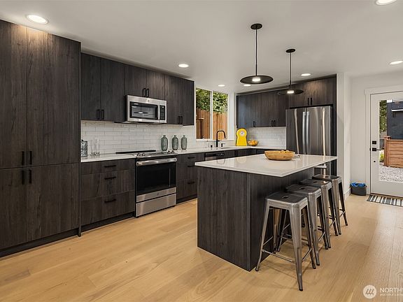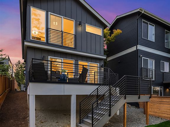 Modern detached cottage by Ashworth Homes in Northeast Seattle offers style and function in a prime location with stunning Lake WA & Cascade views. Tucked away from the street, this home is a hidden gem. The open main level features a designer kitchen with premium appliances & quartz counters, flowing seamlessly into the spacious living area. Sliders open to a private deck overlooking the lake —creating indoor-outdoor living space that is perfect for BBQs & entertaining. Upstairs, you'll find your primary suite with stunning lake view, luxe en-suite & spacious closet plus 2 additional bedrooms, full bath & laundry. EV-ready off-street parking included. Enjoy quick access to Burke-Gilman Trail, Magnuson Park, UW, 522 & I-5.