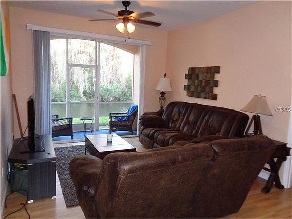Wonderful location of this clean ground floor condo in gated community of Golfview in award winning Hunters Creek. Community features swimming pool, covered parking. Shopping, dining, golf and theme park attractions are near by. The condo is split plan with master bedroom on one side and 2 bedrooms on the other,
