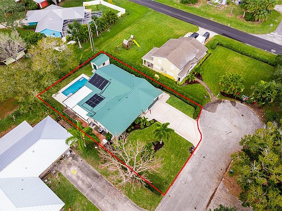 This is it! 3 bed, 2 bath salt water pool home nestled at the end of a cul de sac on a paved road and just minutes to the beach, shopping, and schools. Pack your bags and move right in! NO HOA! No restrictions, This home has been renovated to include: Impact windows & doors (2006); Metal Roof (2020); Whole House Generator & 500 gal leased propane tank(2022); built in gas line for grill; Solar & Electric Heated Pool (2022); Wind Rated Garage Door (2024), New fence (2023); Updated Kitchen & Baths (2022), HVAC & Water Heater (2022) .