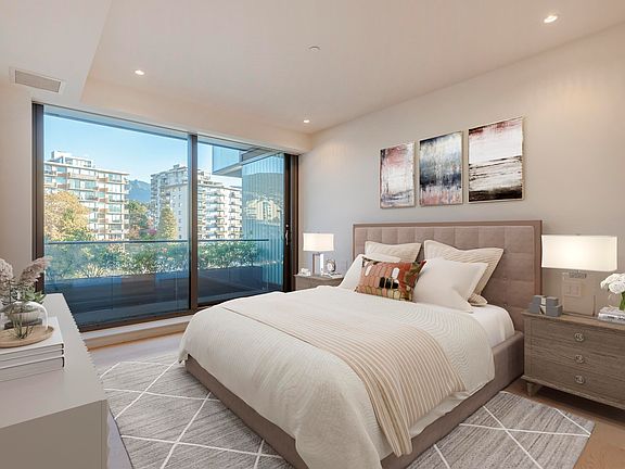 Welcome to West Vancouver's iconic Waterfront building, Grosvenor Ambleside. This boutique building of 98 unique residences was designed by Architect James Cheng for the most discerning of residents in mind. This residence features 2 beds + 2 bath and 1,139 SF of open living space w/356 SF of outdoor space. The bespoke interiors include Italian cabinetry by Snaidero, outfitted with the finest professional grade appliances by Wolf, Sub Zero & Miele, wide plank H/W floors, and Spa-like baths and powder rooms features fixtures by Dornbracht & Philippe Starck. The master bedroom has an impressive walk in closet and 5pc. bathroom with his & her sinks. The home is equipped with A/C and has a private 2 car garage parking space with storage locker. Call for your private appointment today.