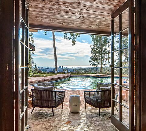 A rare opportunity to live in a lot totaling approx. 2.25 acres in Beverly Hills Post Office. A gated driveway leads you to a motor court before the main home which features a separate apartment above the garage, a guest house, pool, and spa. The garden is perfectly situated to take advantage of the views in utmost privacy. Expansive views from Century City to the Ocean. Pictures are staged.