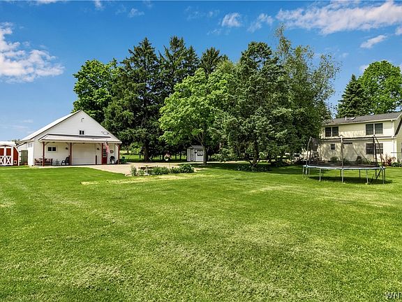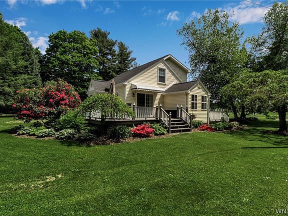 Let us move you in…to the home with land you’ve been waiting for! Sitting on a blissful 6.5 acres, this property has been lovingly cared for and maintained, there is nothing left to do but move in! Surrounded by blooming trees and flowers, this home has a beautiful wraparound porch, leading to a large mudroom. You can look out to your expansive backyard from the updated kitchen, with its quartz countertops and stainless steel appliances. Hardwood floors continue from the kitchen to the dining room, and wall to wall carpet in the living room. French doors lead to the 1st flr bedroom, currently being used as an office. The downstairs full bath was updated in 2021, with white subway tile and classic black fixtures. Upstairs are 2 more bedrooms and the 2nd full bath. Basement is partially finished, with plenty of room on the 2nd half for storage. Brand new sump pump. Outside are 2 outbuildings, shed, chicken coop, and 3 car garage equipped with electrical & shop space. Pear & apple trees line the property. Open House 5/29 from 4-6, 6/1 from 11-1, and 6/2 from 1-3. Showings begin 5/29. Furnace A/C (2019), HWT (2018). Trampoline is not included, playset is.